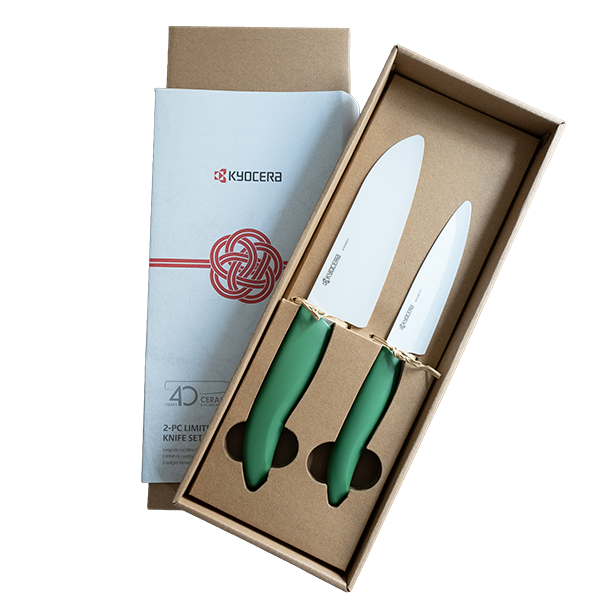 Celebrate 40 years of ceramic knife innovation with this limited-edition anniversary set. Experience our ceramic knives' razor-sharp precision and effortless slicing, crafted with the same precision and passion that has made us industry leaders for 40 years. This set includes two versatile knives that transform your recipe prep and inspire mindful, healthy cooking.