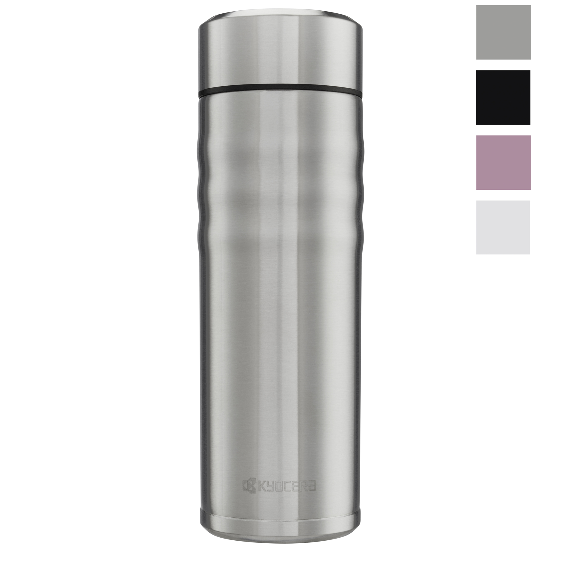 Kyocera's Twist travel mug is perfect for commuting to the office, school, attending outdoor activities or just relaxing at home. Whether you're an all-day coffee, tea, or water drinker or a morning smoothie lover, our twist-top lid and removable easy-drinking insert make it easy to bring your favorite beverage with you wherever you go, keeping it warm or cold for at least 6 to 12 hours depending on the liquid’s starting temperature. Our stainless steel mug features a unique slim exterior design that can fit most cup holders and a removable spill-proof, ice-stopping insert for convenience.